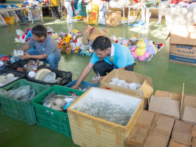 As early as 6:30 in the morning of April 13, volunteers already gathered at the covered grounds of Matandang Balara, Quezon City. Along with Tzu Chi scholars, they brought out boxes of home items and children’s toys, as well as sacks of clothing. All of these were neatly arranged before the bazaar was opened to the public, with many excited customers waiting at the entrance.