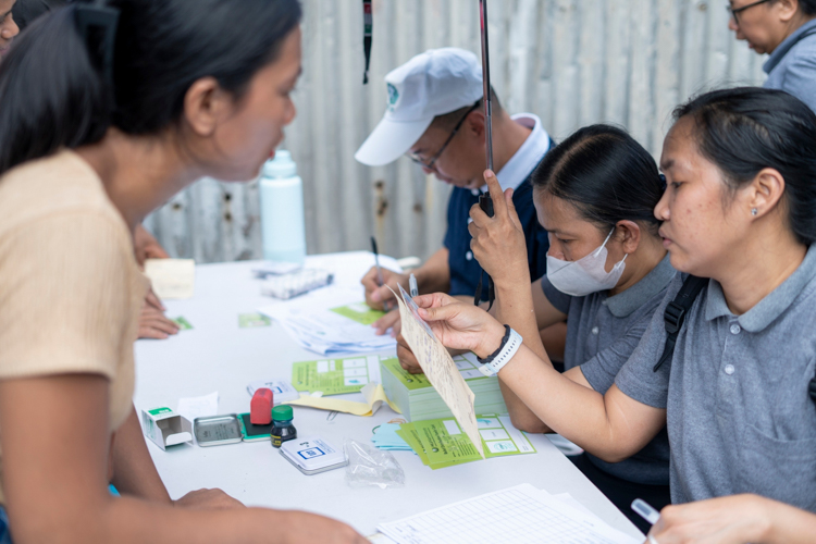 Tzu Chi begins the stub distribution early in the morning to the affected residents in Isla Puting Bato, Barangay 20, Tondo, Manila.