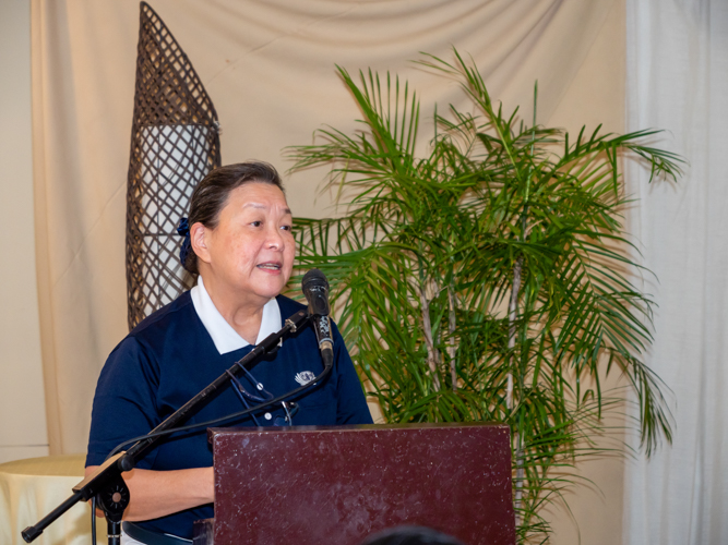 Tzu Chi volunteer Judy Lao presenting at the awards ceremony and thanking all those who made it possible.【Photo by Daniel Lazar】