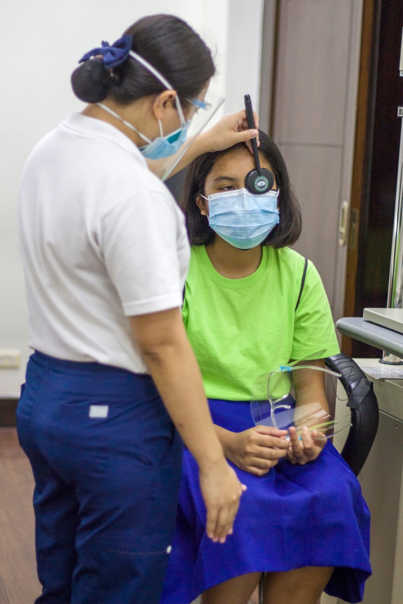 Girlstown students receive instructions before undergoing their eye checkup.【Photo by Matt Serrano】